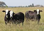 28. 8-Three-quarter Brahman X one-quarter Angus heifers selling 6 to 8 months bred to LBW Red Angus bulls. Perfectly matured, fancy set of black females, weighing 1150lbs, a real set of show-stoppers! |