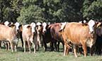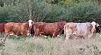 11. 15-True F-1 BXH open heifers, out of an outstanding Registered Brahman cowherd and sired by W4 Ranch Hereford bulls. Heifers will weigh 750 to 800lbs, will sort into some really matched uniform groups. |